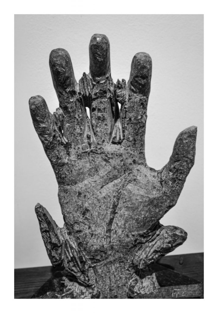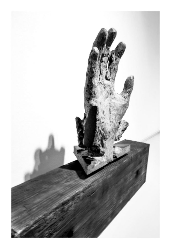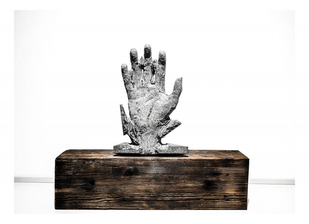 In jedem Schicksalsschlag steckt eine Chance. So haben mich meine Überlastungsdepressionen für ein halbes Jahr aus der realen Welt geführt und mir die Möglichkeit geboten, meinen lang ersehnten, aber nie angegangenen Plan in die Wirklichkeit umzusetzen: die Bildhauerei auszuprobieren. Die Skulptur „Durchbruch“ steht genau für das Bild des Herausbrechens aus der Verschlossenheit hinaus an die noch unbekannte Oberfläche. Dabei ist es keine totale Befreiung von allem Gewesenen, kein völliges Abstreifen der eigenen Geschichte. Stattdessen haftet an den Fingern der „Bodensatz“ des alten Lebens und Teile der ursprünglichen Abgrenzung fliegen durch die Luft, ohne erahnen zu lassen, welche Rollen alter Bodensatz und Abgrenzung im neuen Abschnitt des Lebens spielen werden.