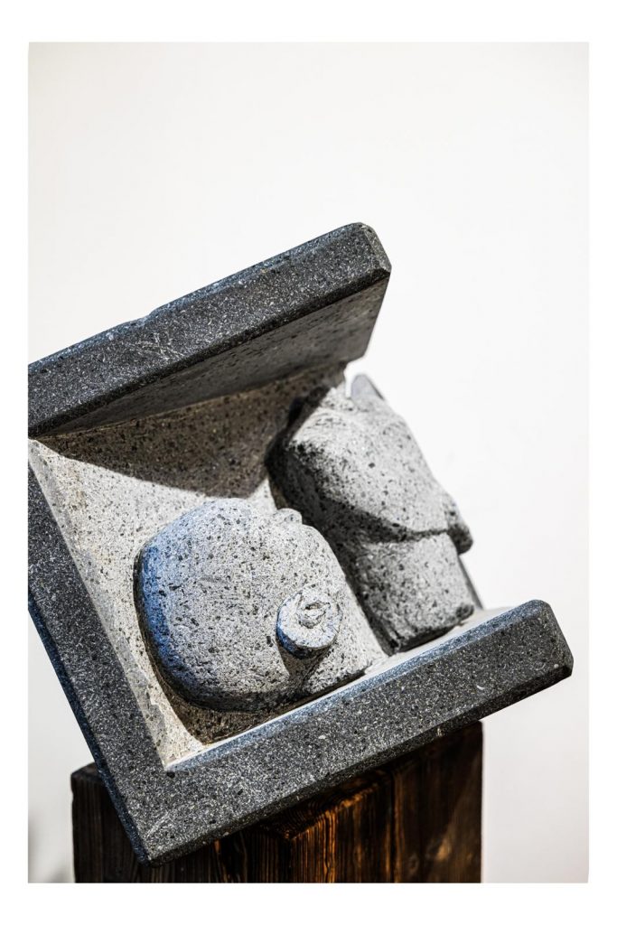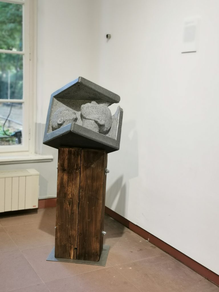 Die „Box des Lebens“ repräsentiert die Beschränktheit, in die wir als Kind hinein geboren werden, und die sich durch Erziehung und Erfahrungen & Umfeld manifestiert. Ehe wir uns versehen, finden wir uns als Erwachsene in einem sich nicht weitere entwickelten Lebensumfeld wieder, indem der Horizont der gleiche „horizontale Deckel“ der Box ist, der uns auch schon als Kind die Sicht auf anderes beschränkte. Erst die Veränderung der Blickrichtung, ein „Perspektivenwechsel“ durch bloßes Drehen des Kopfes ermöglicht tatsächliche Fernsicht, den „Blick auf Neues“. So einfach und grundlegend diese Veränderung des Blickwinkels für gesunde Menschen erscheint, so ungleich schwieriger ist dieser Perspektivenwechsel im Leben depressiver Menschen. Das starre Verharren in der Bewegungslosigkeit „als einzig Leistbares“ verhindert nicht nur das Erfahren von Neuem und möglicher Auswege aus der Erkrankung, sondern schickt den Erkrankten in weitere Negativspiralen. „Perspektivenwechsel“ soll uns alle ermutigen, den Blick auf Neue zu wenden, auch (bzw. gerade dann) wenn uns danach nicht der Sinn steht.