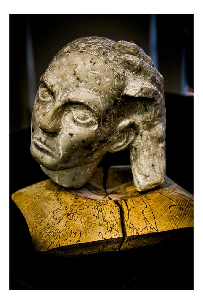 Das Werk „Trau Dich“ steht nicht nur thematisch, sondern auch zeitlich für „Kein Anfang ohne Ende“.  Noch während der Hochphase meiner Depressionen im Jahre 2019 begonnen und im Sommer 2020 vollendet, spiegeln sich in dieser Skulptur Gegenpole wider: die Krankheit „Depression“ als Endstation vs. ein Leben mit der Depression als Neuanfang, ein „von außen unter Druck stehen“ vs. „sich selber aufrichten können“. Ursprünglich als ausschließlich liegender Kopf konzipiert, der durch eine fremde Hand ins Kissen gedrückt wird, entpuppt sich die Skulptur im Laufe ihres Entstehens in aufrechter Position als ein alles andere als „depressives“ Werk: Der zum Boden gerichtete Blick des Kopfes schweift nun in die Ferne, schmerzverzehrte Mundwinkel verwandeln sich in harmlose Gesichtsfalten, und die vormals Druck ausübende Hand eines Dritten wird zur „eigenen“ Hand, auf die sich der Kopf stützend ablegen darf. „Trau Dich“ soll uns daran erinnern, aus unseren „Komfortzonen“ auszubrechen und für uns selbst einzustehen. Dies ist insbesondere relevant im Kontext von Depression, die dem Betroffenen trotz besseren Wissens eine förmlich unabwendbare Ausweglosigkeit suggeriert, die so viel realer erscheint als die kognitiven Vorteile Systemischer Änderungen im eigenen Leben wie z.B. Kontakt mit anderen, die Kraft der Selbstwirksamkeit, Bewegung & Sport, Meditation, etc.