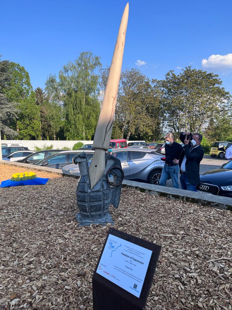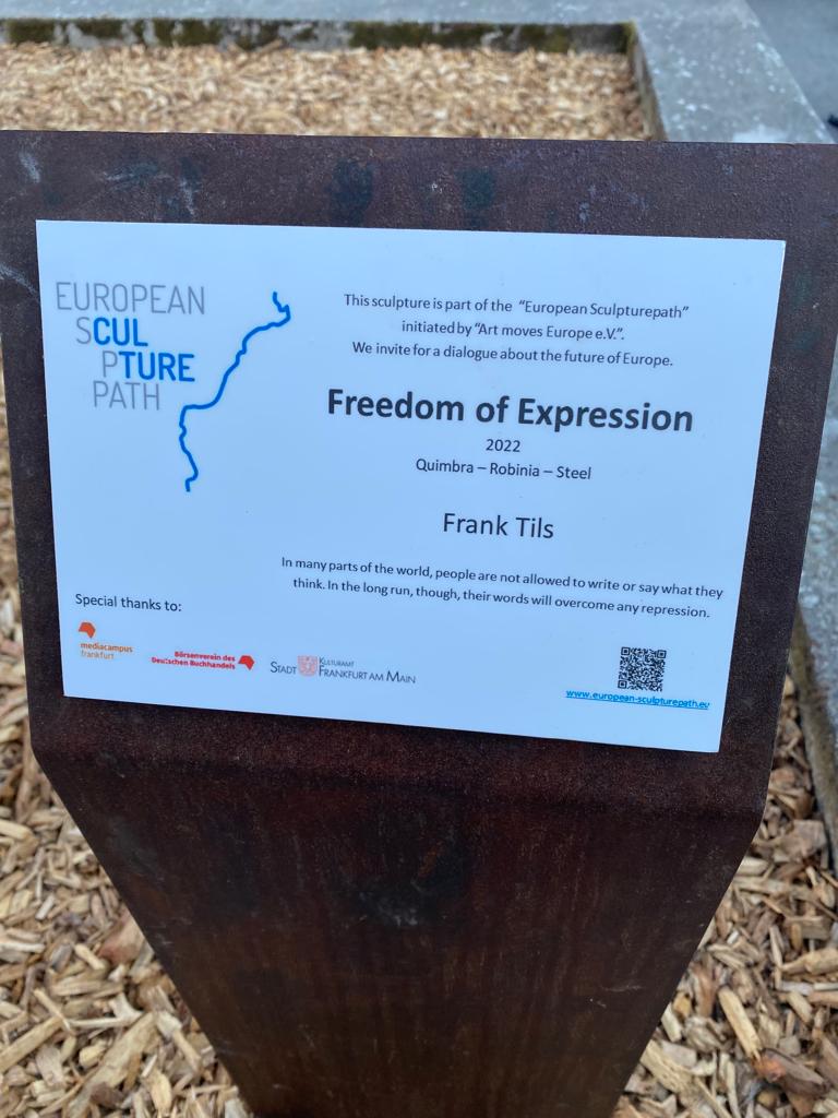 Das Mahnmal „Freiheit des Wortes“ entstand 2022 im Rahmen des Projektes European Sculpture Path des pro-Europäischen Kunstvereins Art Moves Europe.